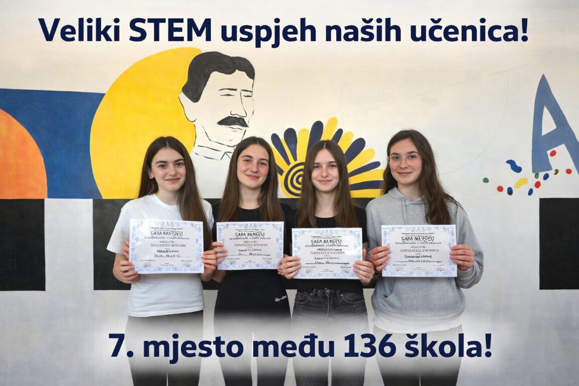 U konkurenciji 136 škola, naše su učenice ostvarile izvrstan rezultat i osvojile visoko 7. mjesto. Ovaj uspjeh rezultat je njihova znanja, upornosti, međusobne podrške i kvalitetnog timskog rada.