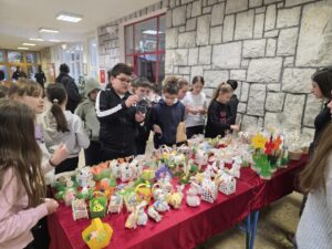 U našoj je školi održan Uskrsni sajam koji je protekao u veselom i kreativnom ozračju te okupio brojne učenike, učitelje i posjetitelje. Posjetitelji su imali priliku razgledati i kupiti raznovrsne rukotvorine, ukrase i prigodne proizvode inspirirane nadolazećim uskrsnim blagdanima.
